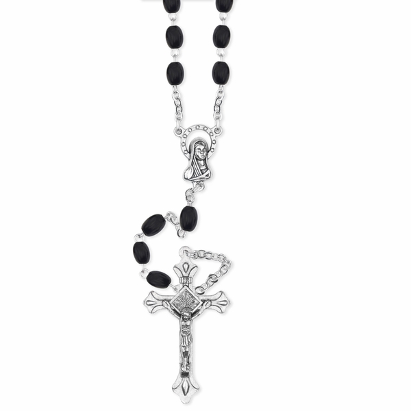 Home/Themes/Men's Jewelry and Gifts/4mm Polished Black Glass Bead Rosary with Crucifix and Madonna Center