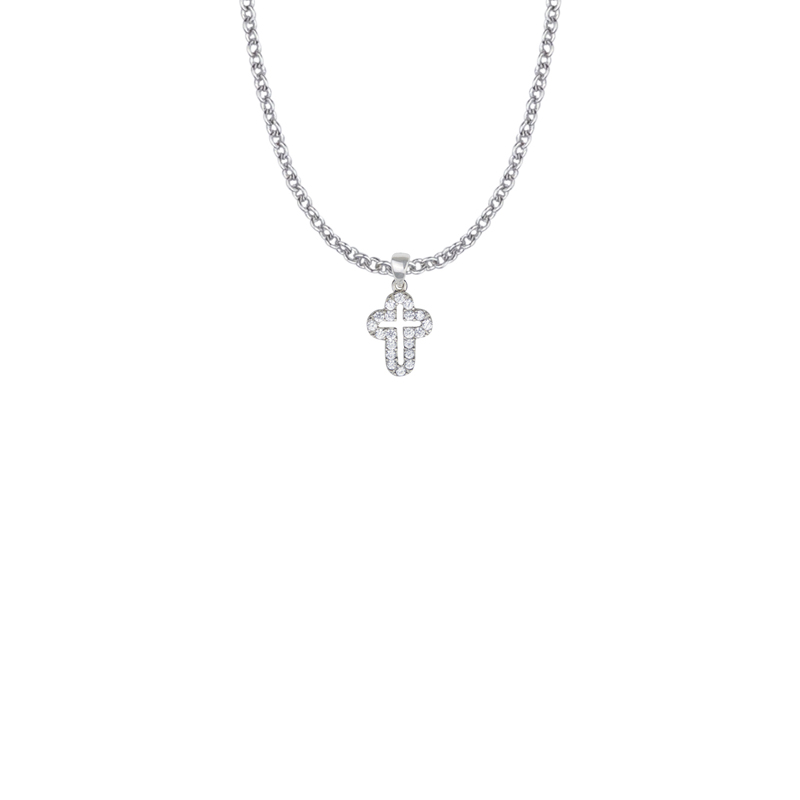 Home/Catholic & Christian Collection/Cross Jewelry/5/8 Inch Sterling Silver Pierced and Round Ends Cross Necklace with Cubic Zirconia Stones